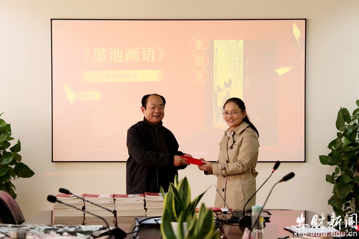 为了弘扬中国传统文化艺术,赓续传统文化文脉,激励师生奋楫新时代、砥砺新征程,10月22日上午,图书与信息中心(图书馆)在七楼会议室举行张银龙先生《墨池画语》图书捐赠颁证仪式。仪式由图信中心党总支书记、主任(馆长)王刚贞主持,中心领导班子成员、各部主任及科级干部参加仪式。