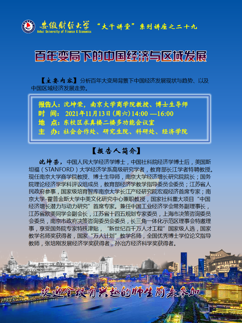 2021年11月13日:【“大千讲堂”系列讲座之二十九】百年变局下的中国经济与区域发展