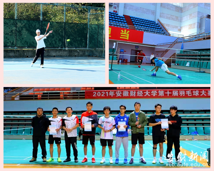 羽毛球比赛经过激烈的角逐,男子团队前三名为金融学院、会计学院和艺术学院,女子团体前三名为统计与应用数学学院、工商管理学院和会计学院;男子单打前三名为李镇宇、郑思远和李昌谕;女子单打前三名为倪树彤、朱树杨和蔡薇;男子双打前三名为郑思远、欧宗枢,吴明宸、马洋和陶皓若、李镇宇;女子双打前三名为蔡薇、张丽平,王文君、李文惠和张淑敏/杨迎。