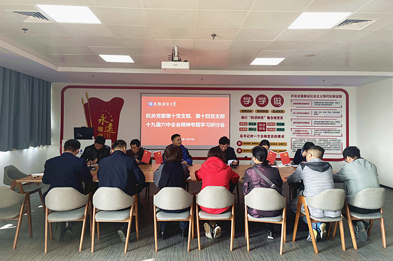 为深入学习贯彻党的十九届六中全会精神,从百年党史中汲取智慧和力量,11月19日上午,机关党委第十、第十四支部在东校区图书和信息中心红色经典学习馆联合开展党的十九届六中全会精神专题学习研讨会。机关党委委员、科研处处长方鸣领学十九届六中全会公报和《中共中央关于党的百年奋斗重大成就和历史经验的决议》精神。会议由第十党支部书记刘梦媛主持。