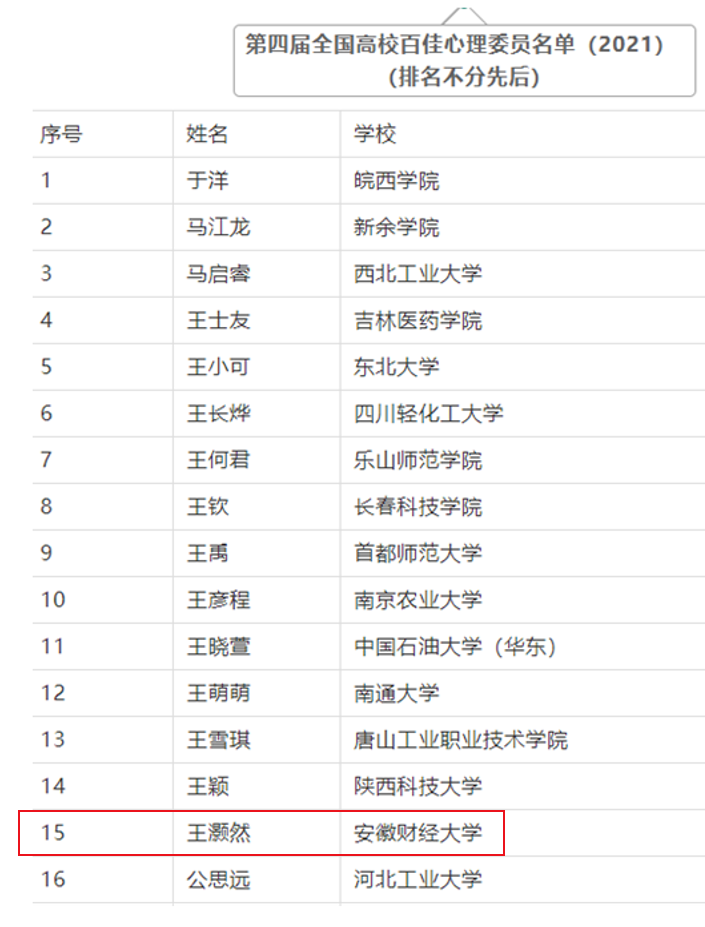 近日,由中国心理学会心理危机干预专业委员会、全国高校心理委员研究协作组主办的第十六届“全国高校心理委员工作研讨会与朋辈心理辅导论坛”在线举办,会议公布了第四届“全国百佳心理委员”名单。我校金融学院王灏然同学荣获“全国百佳心理委员”称号。本次评选活动经院校推荐、网络展示、专家评审、会议终评等环节,最终遴选出“全国百佳心理委员”150名。