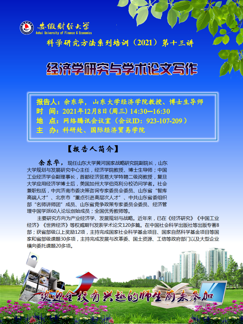 2021年12月8日:【科学研究方法系列培训(2021)第十三讲】经济学研究与学术论文写作