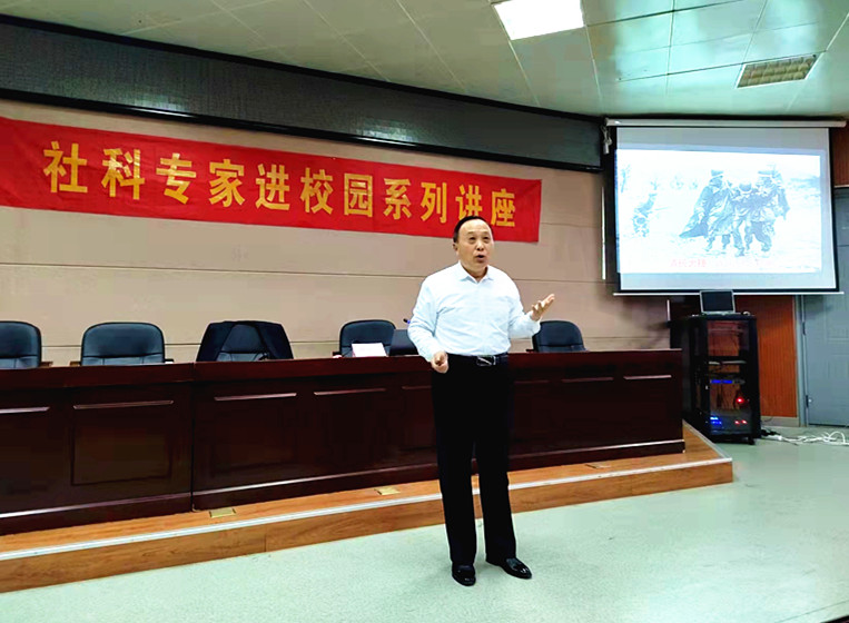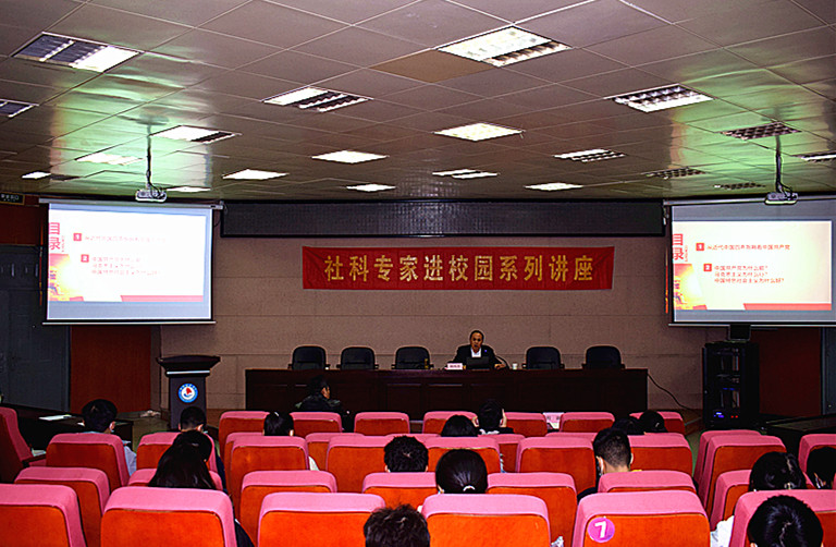 12月11日下午,由蚌埠市社科联、校科研处、校团委、校社科联主办,学生经济研究学会承办的“社科专家进校园”系列讲座在龙湖东校区博文楼研究生报告厅举行。蚌埠市社科联党组书记、社科联主席胡凤芝应邀作了题为《中国共产党百年历史与中华民族苦难辉煌》的主题讲座。讲座由科研处副处长李景宝主持,科研处相关人员和部分师生聆听讲座。