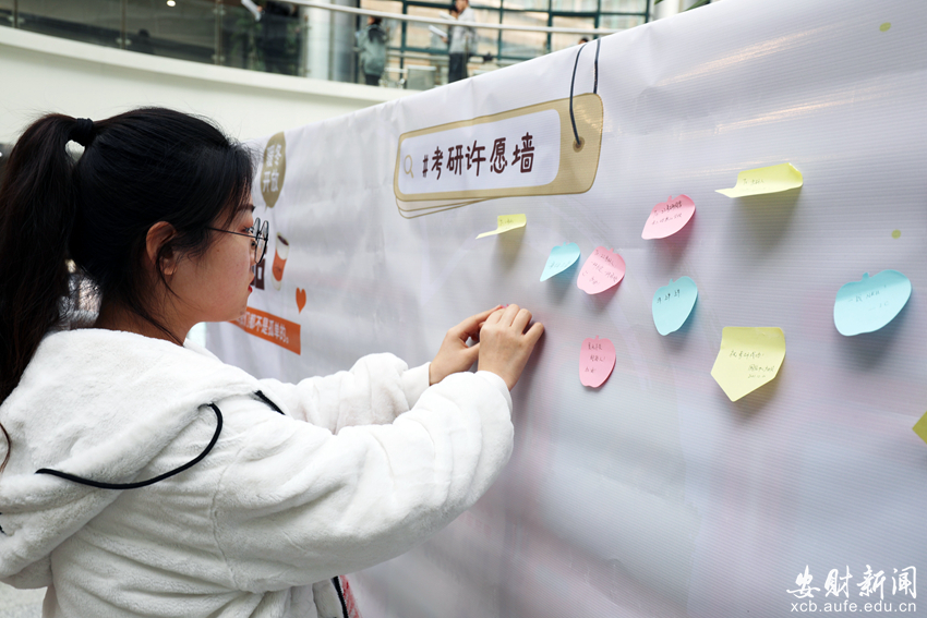 “一战成硕!” “全力以赴的人,终将会满载而归。”在图信中心设立的“考研许愿墙”上,考研学子写下饱含真情的祝福。活动现场,图信中心为考研学子精心准备了文具、暖贴、茶饮等“加油大礼包”,为考研学子鼓舞士气,疏解压力,以最佳的状态迎接即将到来的考试。