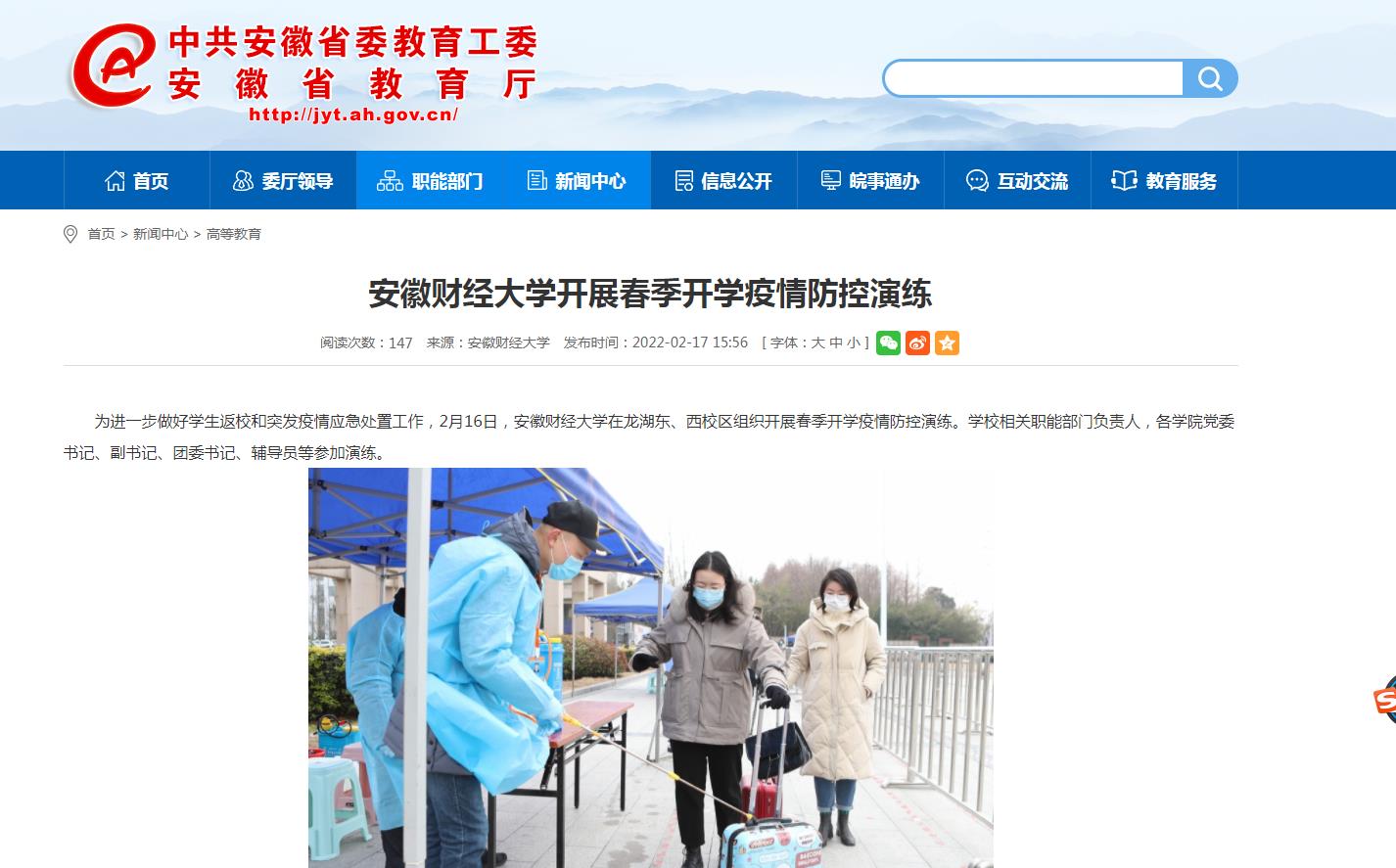 2月17日,安徽教育网以《乐竞在线注册开展春季开学疫情防控演练》为题,对学校进行了专题报道。