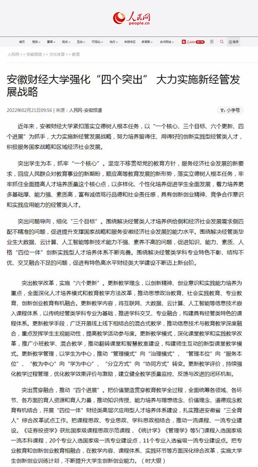 近日,人民网、凤凰网分别以《乐竞在线注册强化“四个突出” 大力实施新经管发展战略》为题,报道我校新经管发展战略成效。
