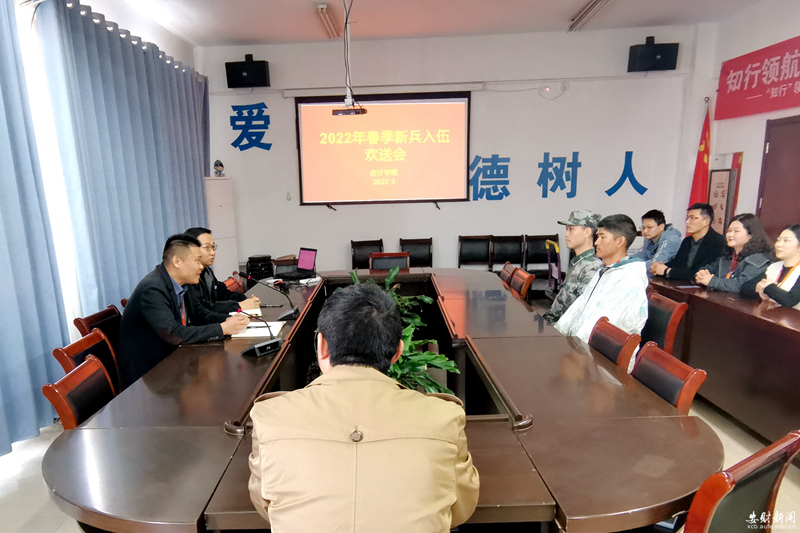 近日,会计学院2022年春季大学生新兵入伍欢送会在学院会议室举行。学院党委负责人、部分辅导员参加欢送会。