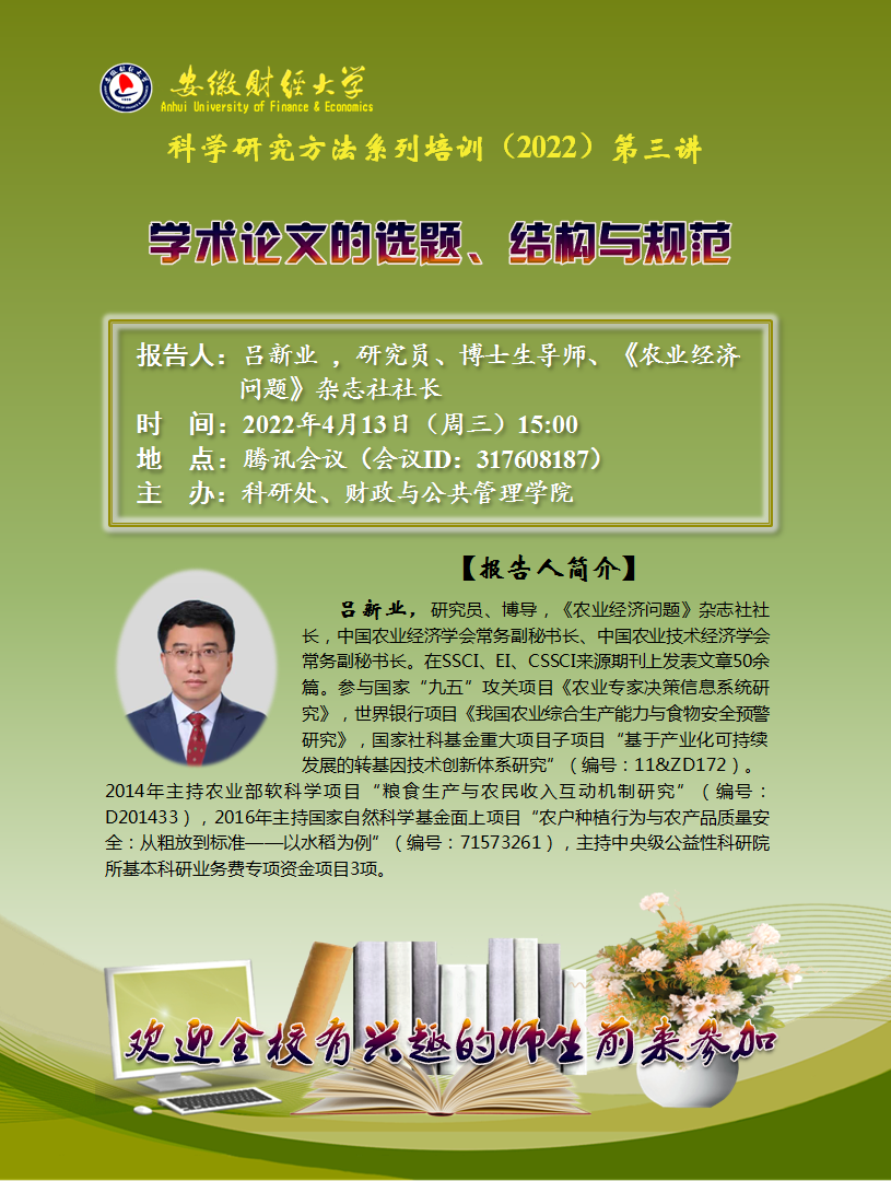 2022年4月13日:【科学研究方法系列培训(2022)第三讲】学术论文的选题、结构与规范