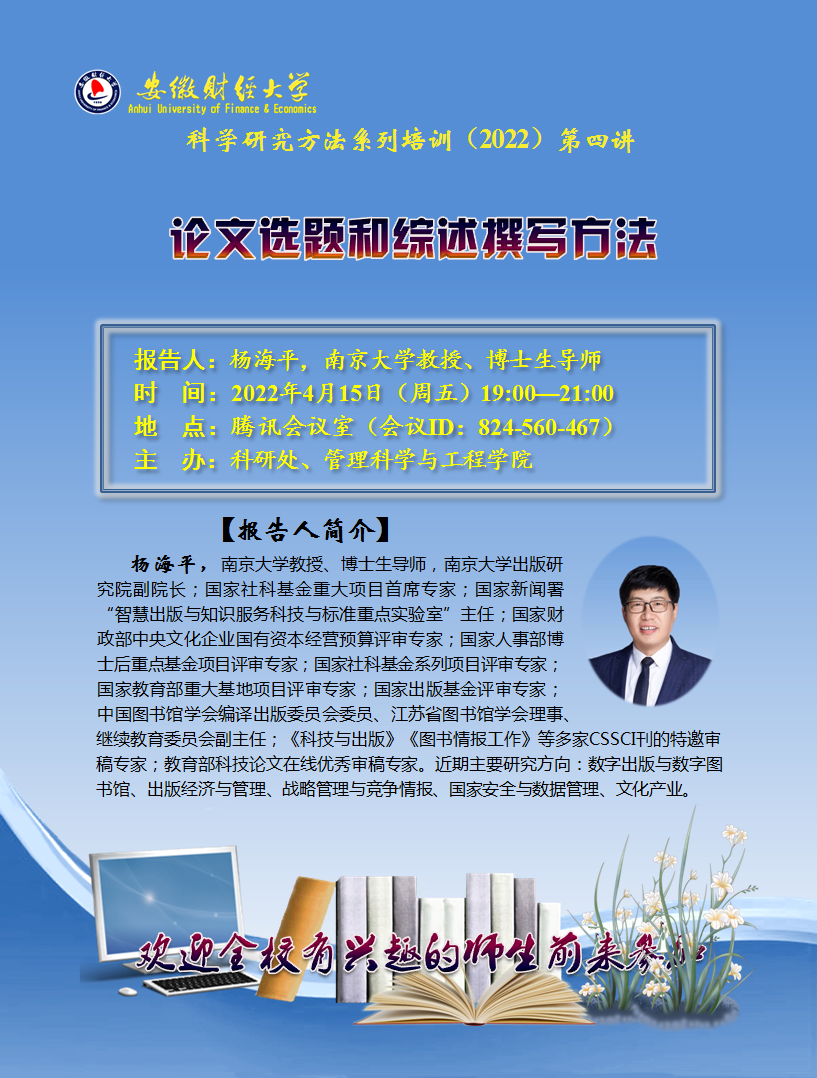 2022年4月15日:【科学研究方法系列培训(2022)第四讲】论文选题和综述撰写方法