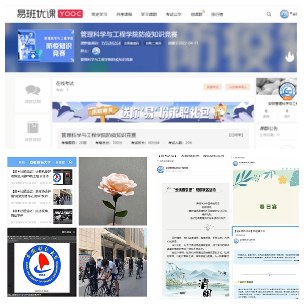 近期,面对依旧严峻复杂的新冠肺炎疫情形势,为扎实做好学生思想政治教育工作,守牢网络意识形态阵地,强化“网络育人”成效,管工学院依托“易班”平台,开展系列特色网络思政活动,做好常态化疫情防控管理,引导教育学生安心学习、健康生活。