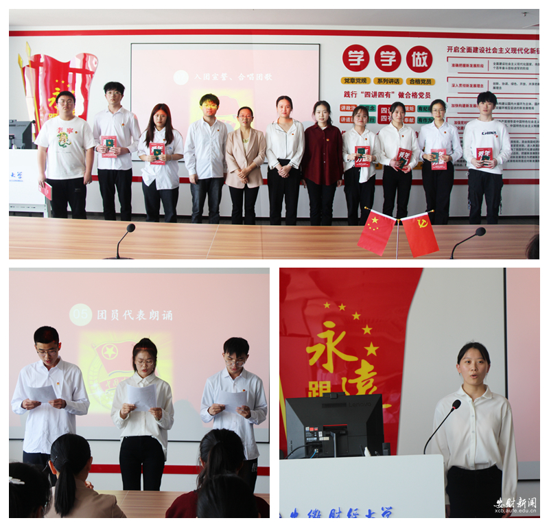 活动现场,老团员为新团员佩戴团徽,赠送《青年的力量》读本。新团员集体宣誓,老团员重温入团誓词,全体团员合唱团歌。共青团员们通过青春告白祖国宣言、诗朗诵等方式,表示将不负使命,勇挑重担,积极作为,争做堪当民族复兴重任的时代新人。徐翠平希望团员青年们坚定理想信念,不断砥砺前行,认真履行团员义务,在青春的赛道上奋力奔跑,争做一名优秀的共青团员,为学校、学院的发展贡献青春力量。