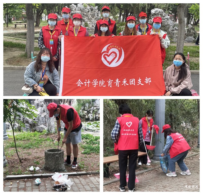 在活动地点,志愿者们清扫垃圾、捡拾树叶,清洁垃圾桶表面卫生,宣传垃圾分类基本知识,将劳动教育融入学院“育青禾”团支部品牌项目,把劳动精神与志愿服务精神有机融合。经过一个多小时的辛勤劳动,朗园的环境变得干净整洁,志愿者们也在劳动中进一步践行了热爱劳动、无私奉献的会计学院学生传统。