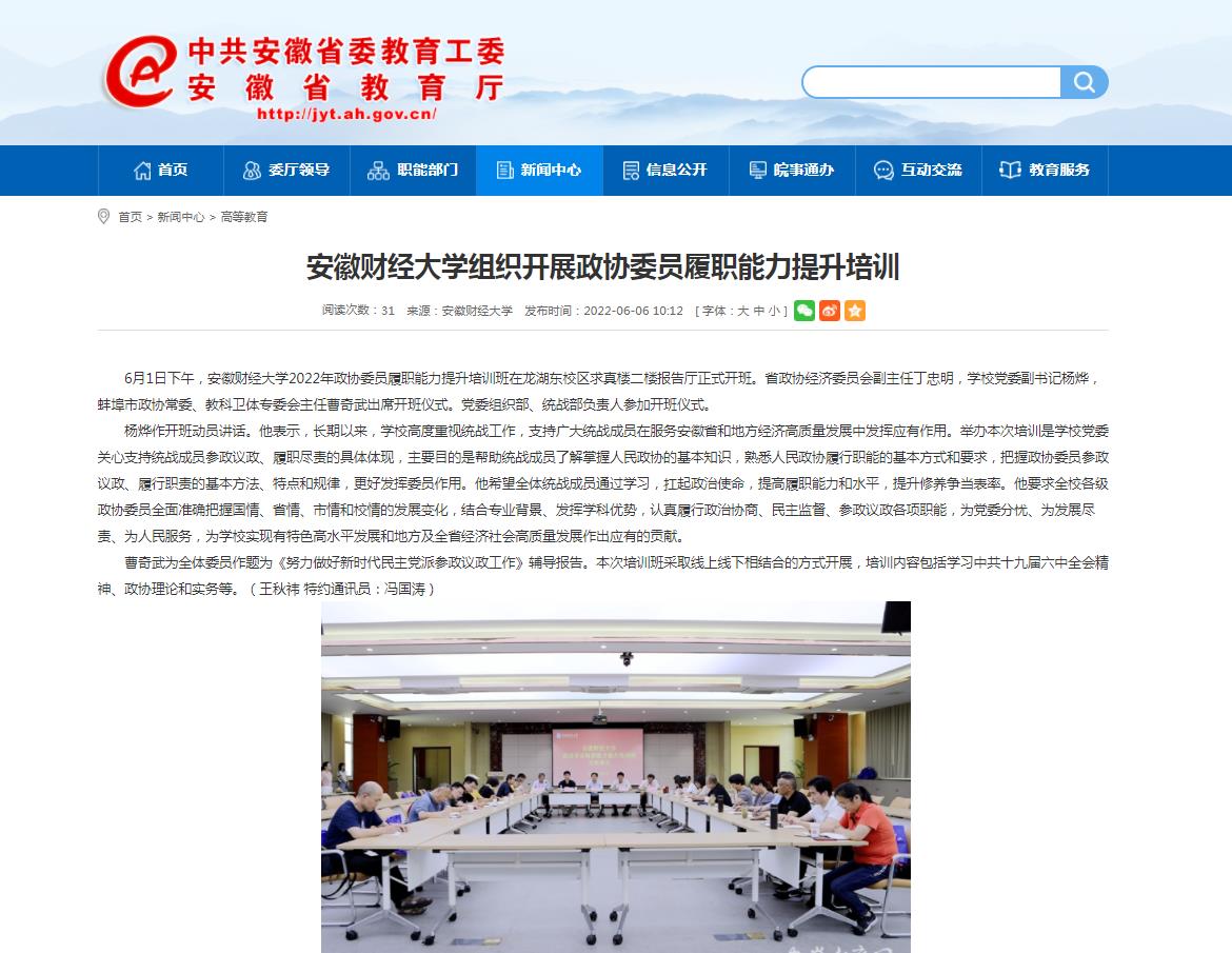 6月6日,安徽教育网以《乐竞在线注册组织开展政协委员履职能力提升培训》为题,报道我校组织开展政协委员履职能力提升培训。