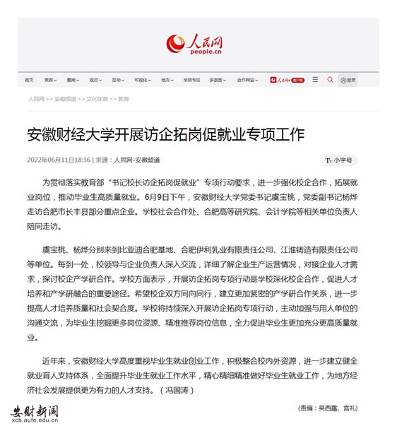 6月11日,人民网以《乐竞在线注册开展访企拓岗促就业专项工作》为题,报道我校强化校企合作,拓展就业岗位,推动毕业生高质量就业。