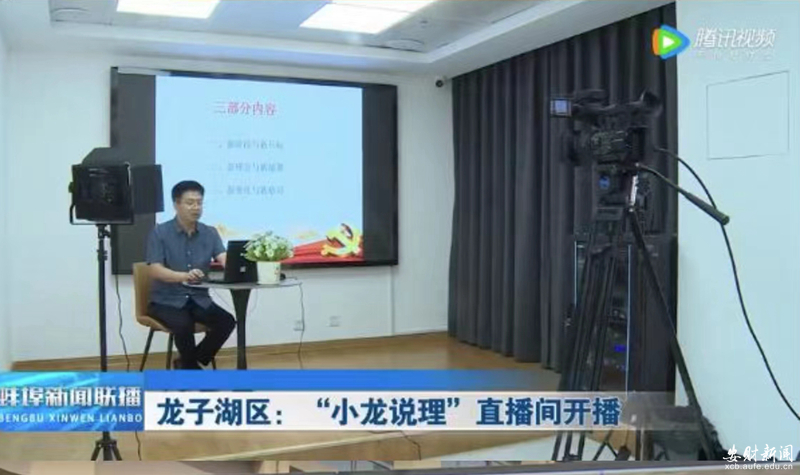 为全面贯彻落实党的十九大和十九届历次全会精神,充分发挥我校马克思主义学院的理论优势,引导师生深入基层、服务基层,学院与蚌埠市龙子湖区文明办共同组建“小龙说理”志愿服务宣讲团,在龙子湖区广泛开展以“强国复兴有我”为主题的群众性宣传教育活动。7月27日,“小龙说理”直播间正式开播,马克思主义学院副教授徐伟老师在线向广大居民解读“十四五”规划,淮滨社区居民在分会场线下同步收看并与授课教师互动交流。