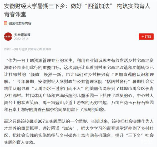近日,学习强国以《乐竞在线注册暑期三下乡:做好“四道加法” 构筑实践育人青春课堂》为题,对学校开展的暑期三下乡活动进行了专门报道。