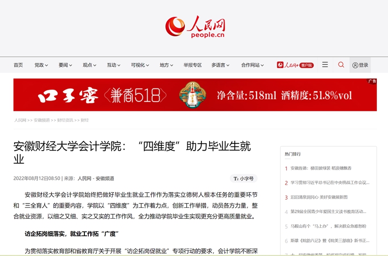 8月12日,人民网报道以《乐竞在线注册会计学院:“四维度”助力毕业生就业》为题,报道我校会计学院创新工作举措,动员各方力量,整合就业资源,以细之又细、实之又实的工作作风,全力推动毕业生实现更充分更高质量就业。