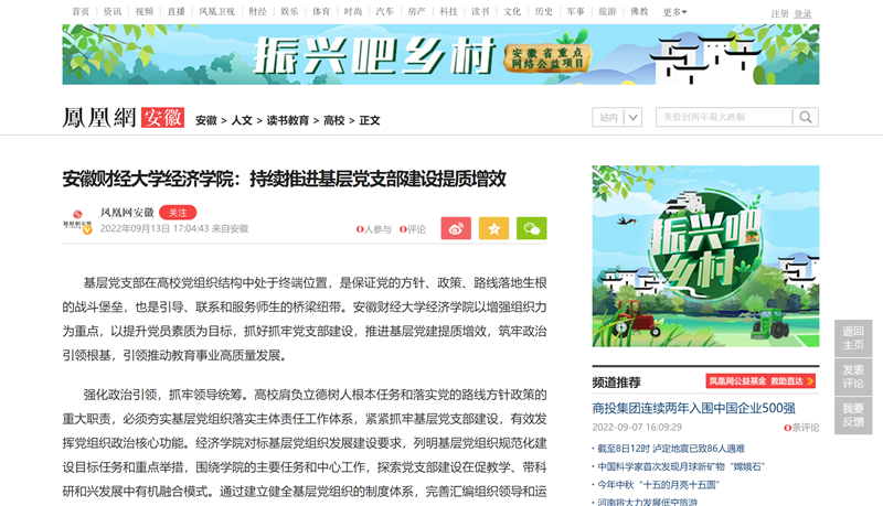 9月13日,凤凰网以《乐竞在线注册经济学院:持续推进基层党支部建设提质增效》为题,报道我校经济学院以增强组织力为重点,以提升党员素质为目标,抓好抓牢党支部建设,推进基层党建提质增效,筑牢政治引领根基,引领推动教育事业高质量发展。