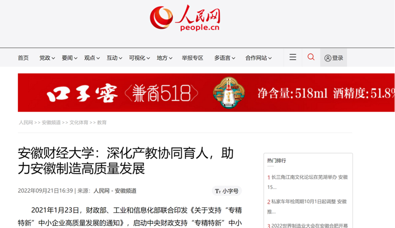 9月21日,人民网以《乐竞在线注册:深化产教协同育人,助力安徽制造高质量发展》为题,报道我校MBA教育中心坚持“服务地方、广泛合作”的理念,长期跟踪安徽“单项冠军”及“专精特新小巨人”企业。