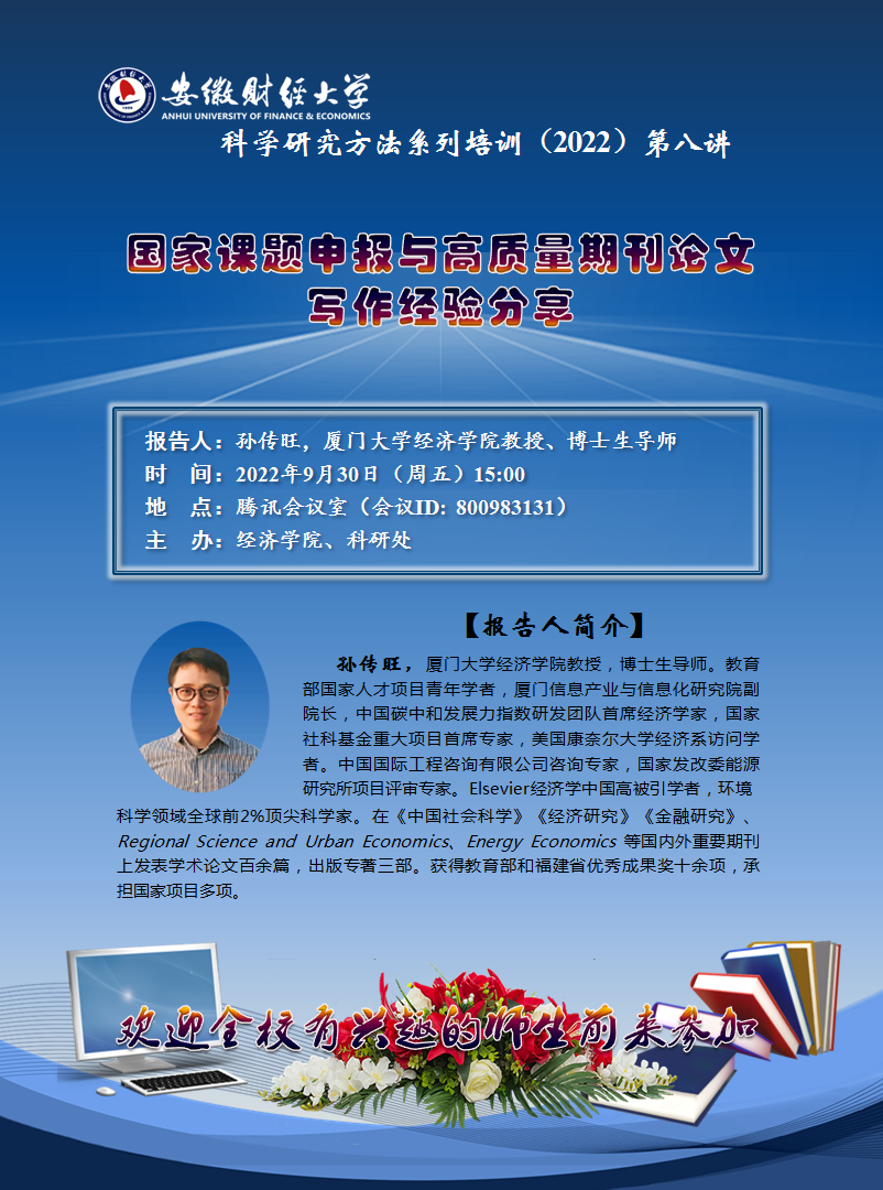 2022年9月30日:【科学研究方法系列培训(2022)第八讲】国家课题申报与高质量期刊论文写作经验分享