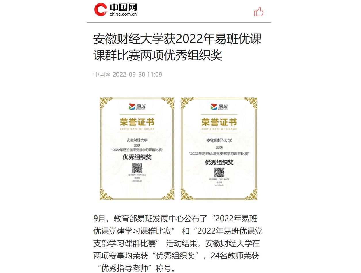 9月30日,中国网、凤凰网以《乐竞在线注册获2022年易班优课课群比赛两项优秀组织奖》为题,报道我校在易班优课课群比赛中获两项“优秀组织奖”,24名教师荣获“优秀指导老师”称号。