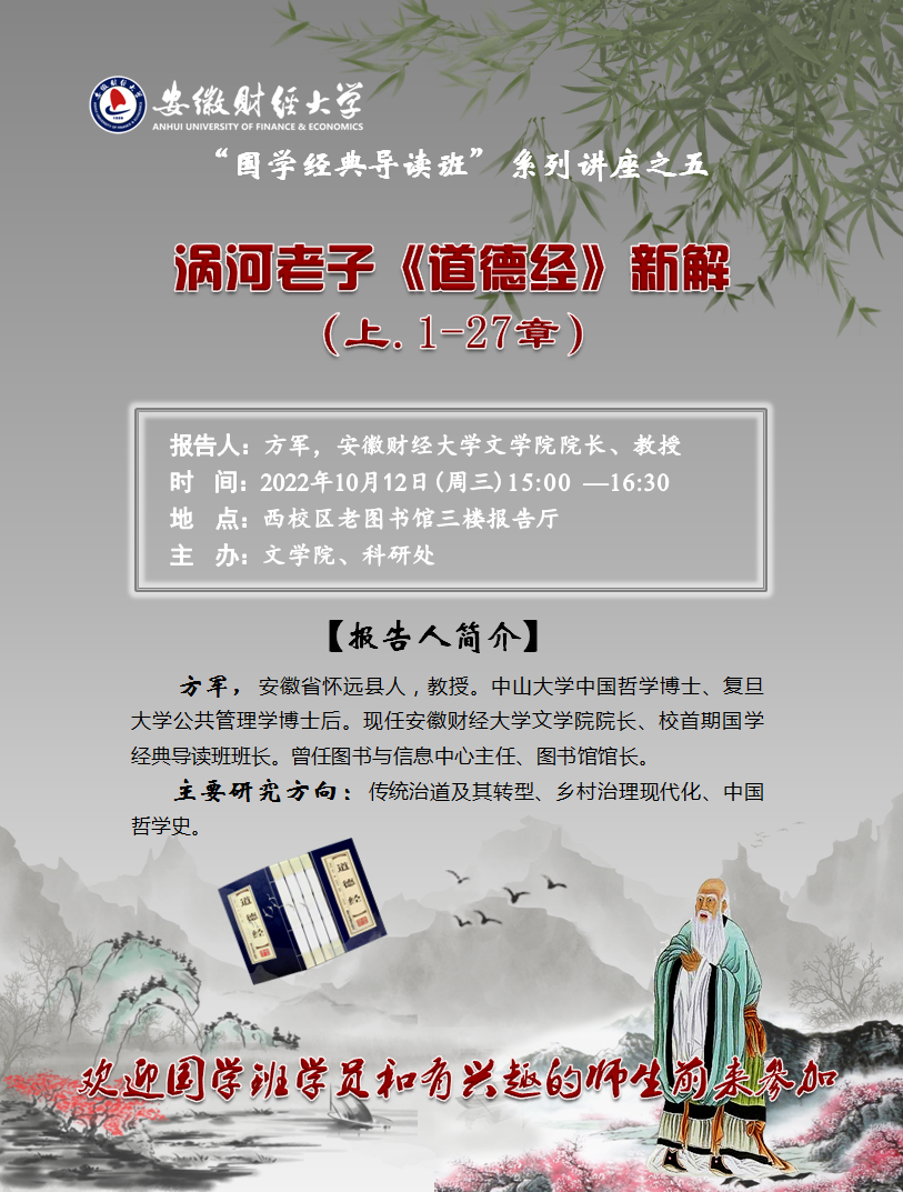 2022年10月12日:【“国学经典导读班” 系列讲座之五】涡河老子《道德经》新解(上.1-27章)