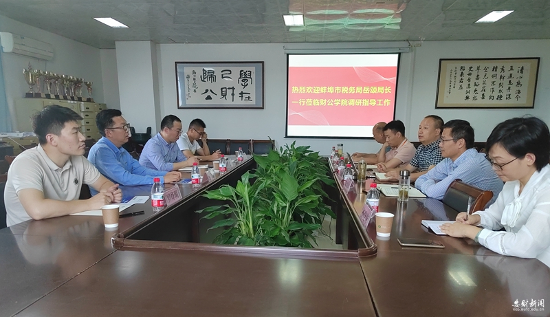 9月29日下午,国家税务总局蚌埠市税务局党委书记、局长岳颂一行来财政与公共管理学院调研交流,财公学院院长储德银、党委副书记陈先年、副院长罗鸣令和税务系教师代表参加调研座谈,会议由储德银主持。