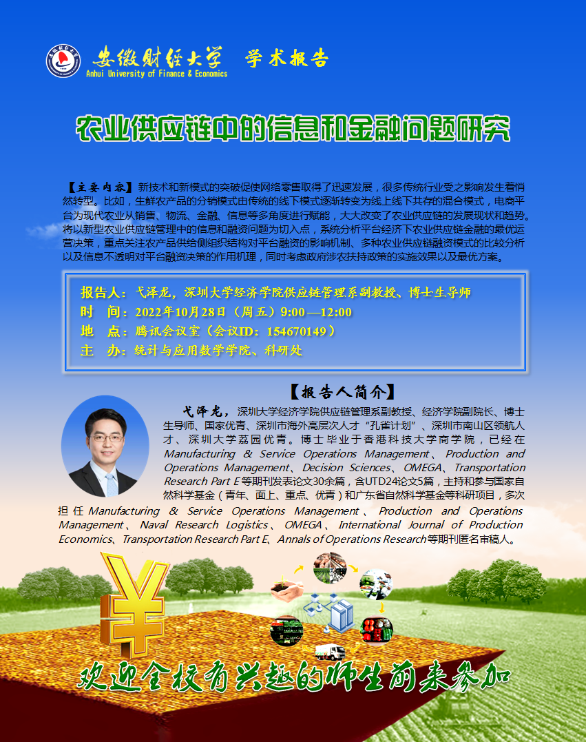 2022年10月28日:农业供应链中的信息和金融问题研究