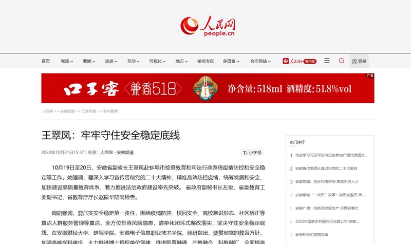 人民网报道链接:http://ah.people.com.cn/n2/2022/1021/c358428-40166225.html