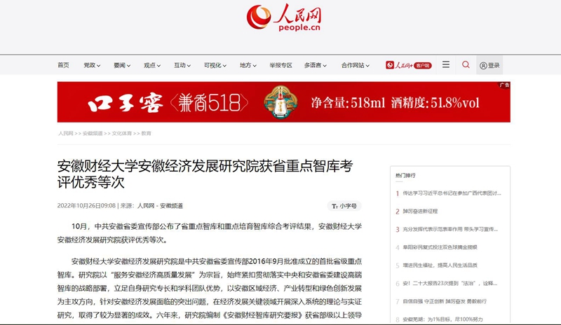 10月26日,人民网、安徽教育、凤凰网以《乐竞在线注册安徽经济发展研究院获省重点智库考评优秀等次》为题,报道我校安徽经济发展研究院获安徽省重点智库考评优秀等次。