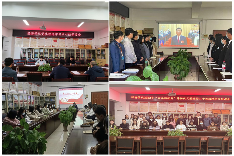 党的二十大召开以来,经济学院将学习宣传贯彻党的二十大精神作为首要政治任务,组织全院师生收看党的二十大开幕会,组织各级党团组织、学生组织等开展专题学习。通过党委理论中心组学习、党支部主题学习、团日活动等方式,深入学习宣传贯彻党的二十大精神。学院全体教职工紧紧围绕学校、学院建设目标,把充分践行党的二十大精神与学院学科专业建设、人才培养、教育教学等各方面深度融入,全面贯彻落实立德树人根本任务,推动学校学院实现高质量发展。