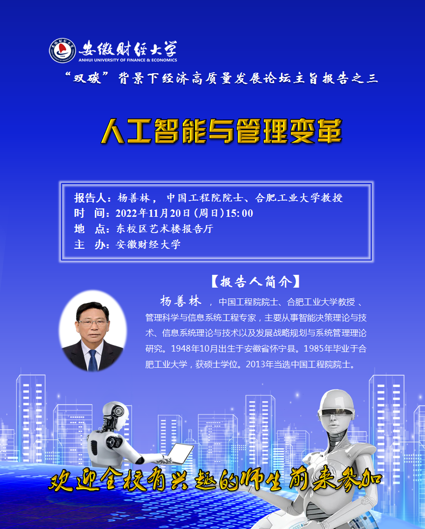 2022年11月20日:【“双碳”背景下经济高质量发展论坛主旨报告之三】人工智能与管理变革