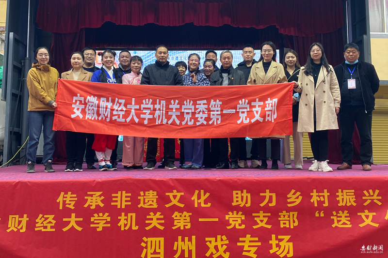 去年底,学校机关党委第一党支部与固镇县湖沟镇兰石居党总支签署了基层党组织共建协议。为深入推进共建机制的落地落实,共建双方经过多次沟通协商,决定把党的二十大报告中提出的“全面推进乡村振兴,坚持农业农村优先发展,巩固拓展脱贫攻坚成果,加快建设农业强国,扎实推动乡村产业、人才、文化、生态、组织振兴”作为当前和今后一个时期的共建的主要内容。此次活动把传承蚌埠特色非遗文化与推动乡村文化振兴有机结合,邀请固镇县久畅泗州戏剧院为兰石居干部群众送上了“泗州戏”《懒大嫂赶会》、《为什么没有人给我说婆婆》、《拾棉花》选段、《老娘》等精彩节目,弘扬勤劳致富、诚实善良、孝老爱亲等乡风乡俗和价值追求。其中,由泗州戏国家级非遗代表性传承人、“泗州戏皇后”李宝琴老师第四代传人、市级非遗传承人陈兴云,李派第五代传人、市级非遗传承人马利等表演的《懒大嫂赶会》曾应邀在央视一鸣惊人栏目展示。