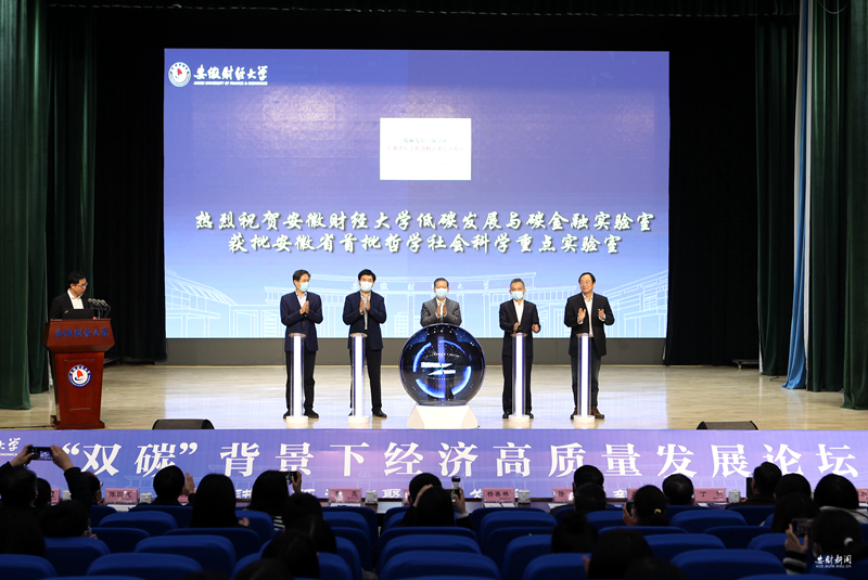 袁亮、李建刚、操龙灿、虞宝桃、丁忠明共同为我校“低碳发展与碳金融”安徽省哲学社会科学重点实验室揭牌。