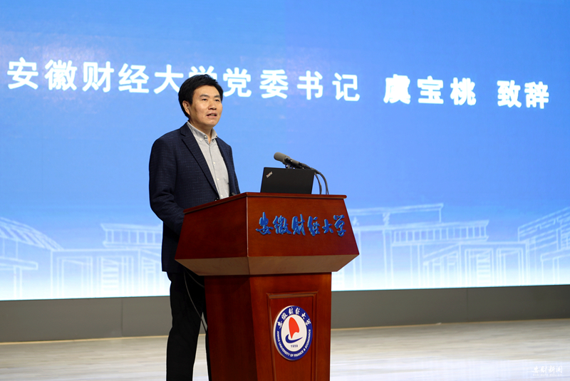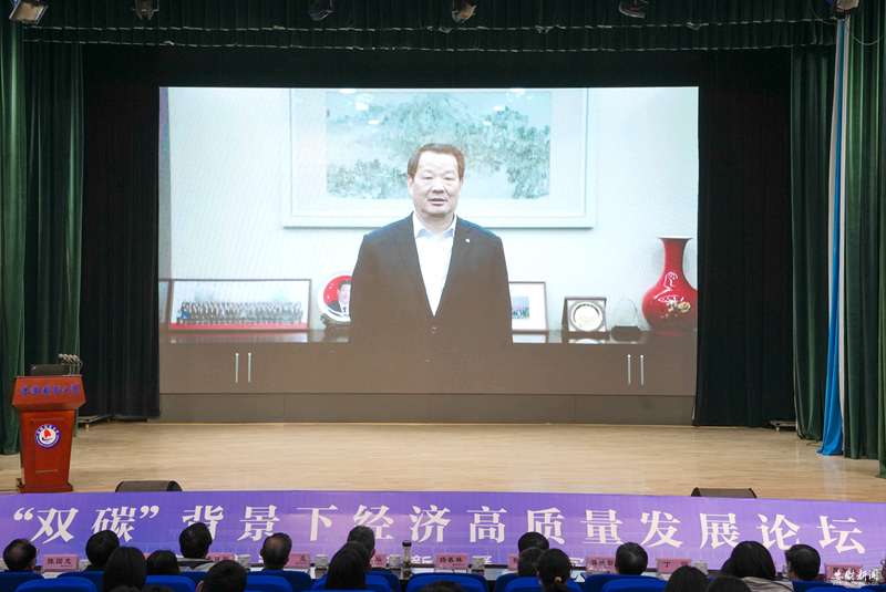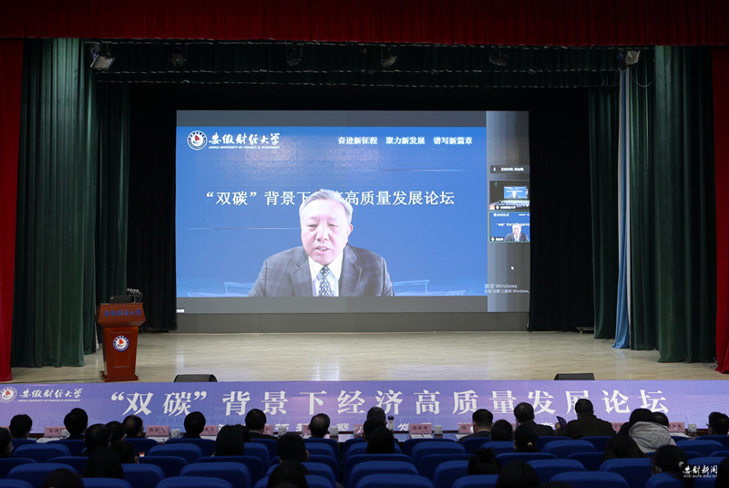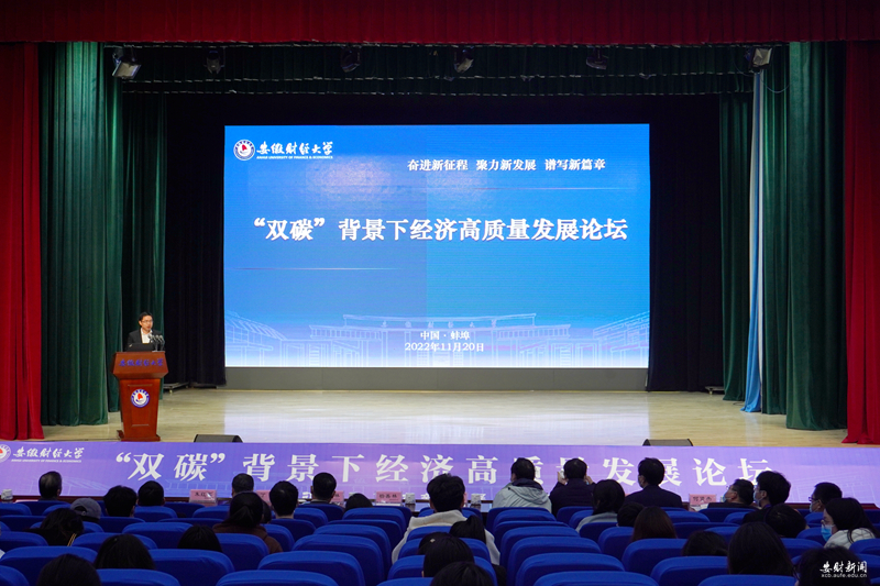 虞宝桃代表学校向参加论坛的各位专家学者表示诚挚欢迎,向一直以来关心支持学校建设发展的各位领导嘉宾表示衷心感谢。他介绍了学校学科建设、人才培养、队伍建设、科学研究、社会服务等方面情况,他指出,党的二十大报告对于“碳达峰碳中和”和“经济高质量发展”作出了重要战略部署,“双碳”与经济高质量发展是辩证统一关系。本次论坛是学校贯彻落实党的二十大精神的生动实践,也是学校服务国家战略,为推动绿色低碳经济高质量发展贡献力量的应有之义。虞宝桃表示,学校将以党的二十大精神为指引,深入实施“安财新经管”发展战略,沿着“走出去、建平台、上水平”发展路径,坚持学科引领、人才强校、育人为本、科研兴校与开放办学,完整、准确、全面贯彻新发展理念,聚焦聚力服务国家战略与地方经济社会高质量发展,不断强化责任担当,为全面推进中国特色社会主义现代化国家建设,加快推进新阶段现代化美好安徽建设贡献“安财智慧”与“安财力量”。虞宝桃希望学校以本次论坛为契机,进一步深化与蚌埠市委、市政府及兄弟高校、科研院所的交流合作,加强对绿色金融、投资政策、财税政策等方面的理论和应用研究,增强推动绿色低碳发展的本领,把低碳发展纳入办学治校全过程,以实际行动助力“双碳”目标的实现。