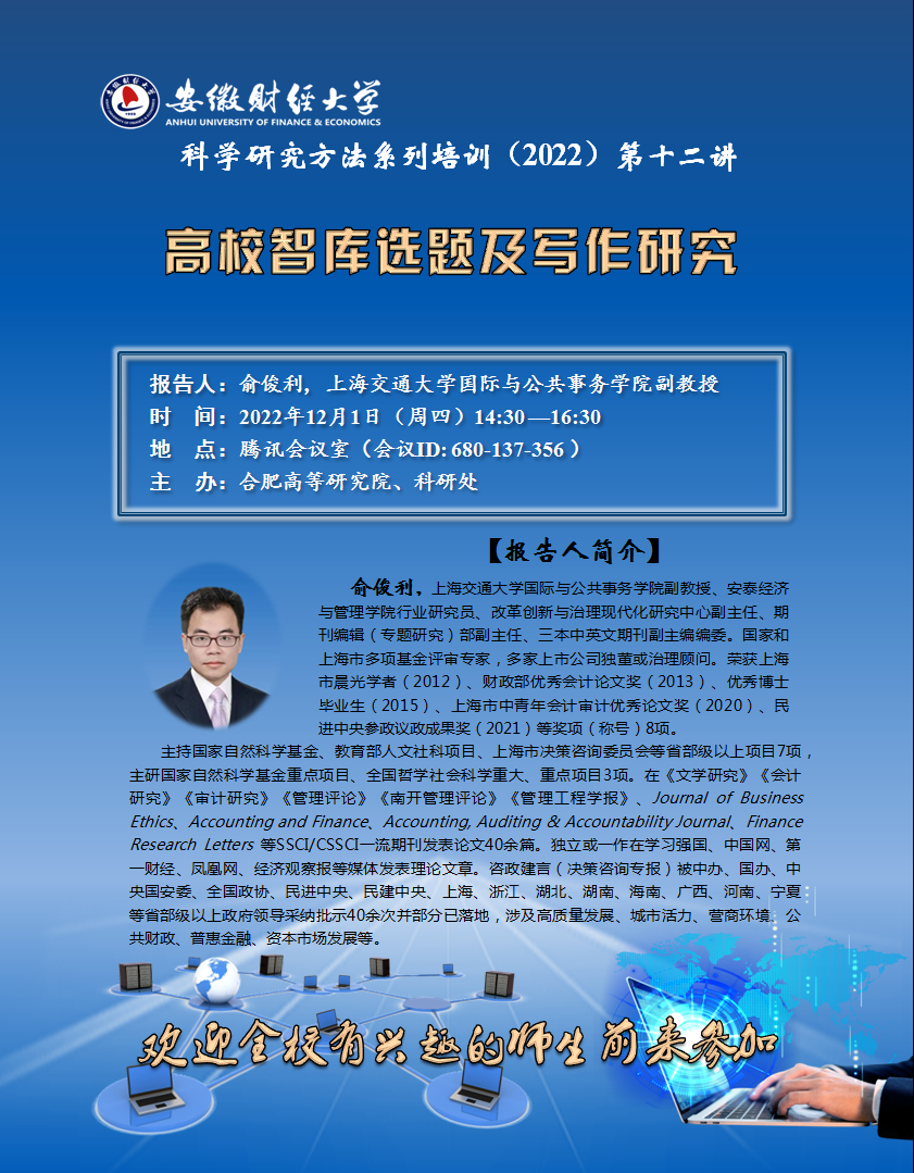 2022年12月1日:【科学研究方法系列培训(2022)第十二讲】高校智库选题及写作研究