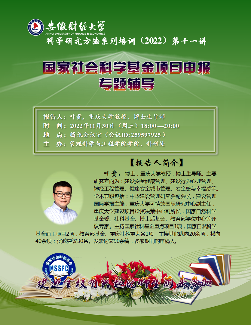 2022年11月30日:【科学研究方法系列培训(2022)第十一讲】国家社会科学基金项目申报专题辅导