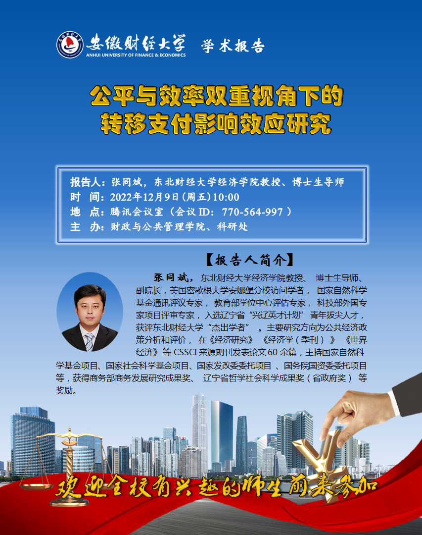 2022年12月9日:公平与效率双重视角下的转移支付影响效应研究