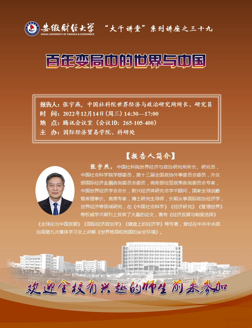 2022年12月14日:【“大千讲堂”系列讲座之三十九】百年变局中的世界与中国