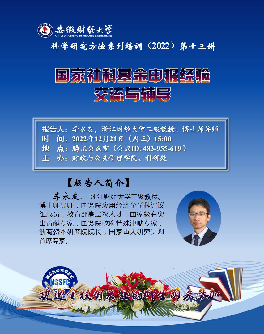 2022年12月21日:【科学研究方法系列培训(2022)第十三讲】国家社科基金申报经验交流与辅导