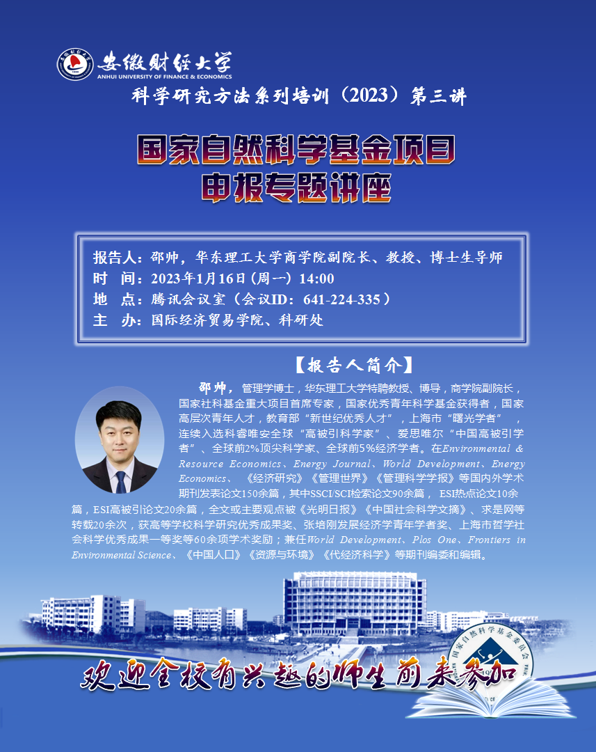 2023年1月16日:【科学研究方法系列培训(2023)第三讲】国家自然科学基金项目申报专题讲座
