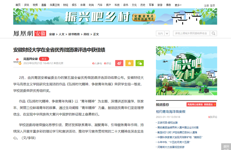 2月21日,凤凰网以《乐竞在线注册在全省优秀微团课评选中获佳绩》为题,报道我校在第五届全省优秀微团课评选活动中喜获佳绩。