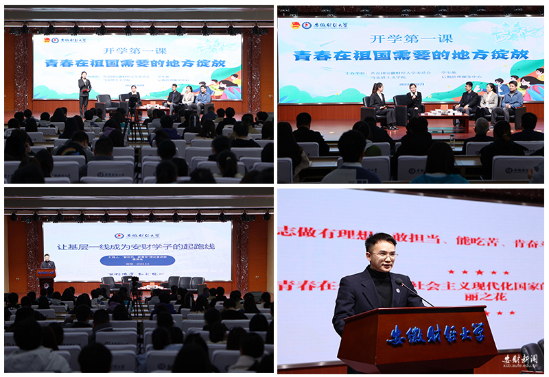 活动中,党的二十大精神学生宣讲团成员、马克思主义学院2022级硕士研究生蒋泽华以习近平总书记对青年的殷切期望为引,“临摹”了在平凡基层岗位中春风化雨服务群众、振兴乡村的“安财青春之花”绽放模样。校友中的两位“青春榜样”通过亲身经历分享,为现场师生带来一次沉浸式“开学第一课”。金融学院2011届毕业生、安徽省亳州市涡阳县青疃镇党委副书记、镇长赵良影分享了她在乡村振兴一线迎难而上的点点滴滴,与乡村居民从陌生到熟悉的真挚感情,在“群众路线”中沉下心来的心路历程;乐竞在线注册商学院2016届毕业生、深圳市科科通教育信息技术有限责任公司创始人许为耿分享了他在学校创业孵化基地创业的起点,坚持校园创新创业的初心,将创业理念落实到创业实践的甘苦历程。