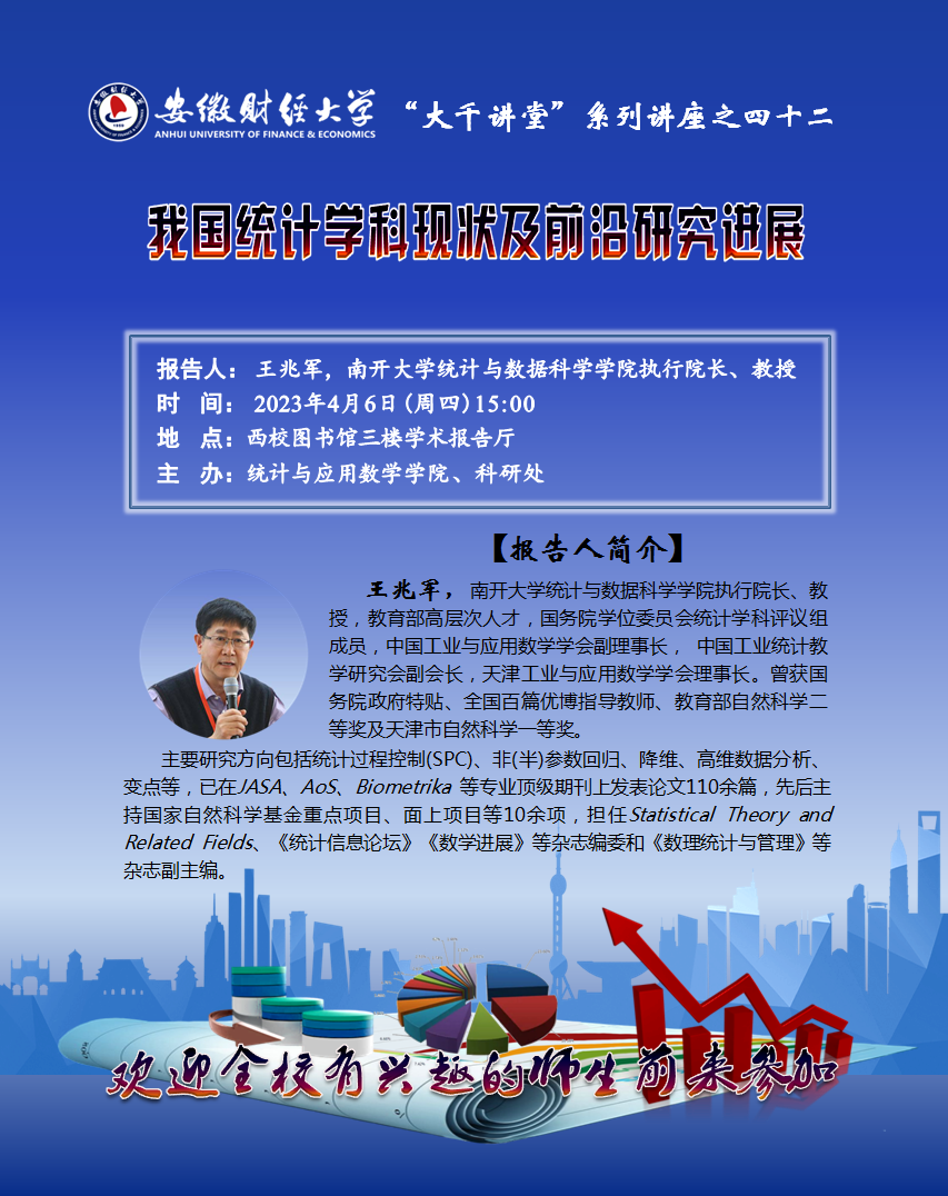 2023年4月6日:【“大千讲堂”系列讲座之四十二】我国统计学科现状及前沿研究进展