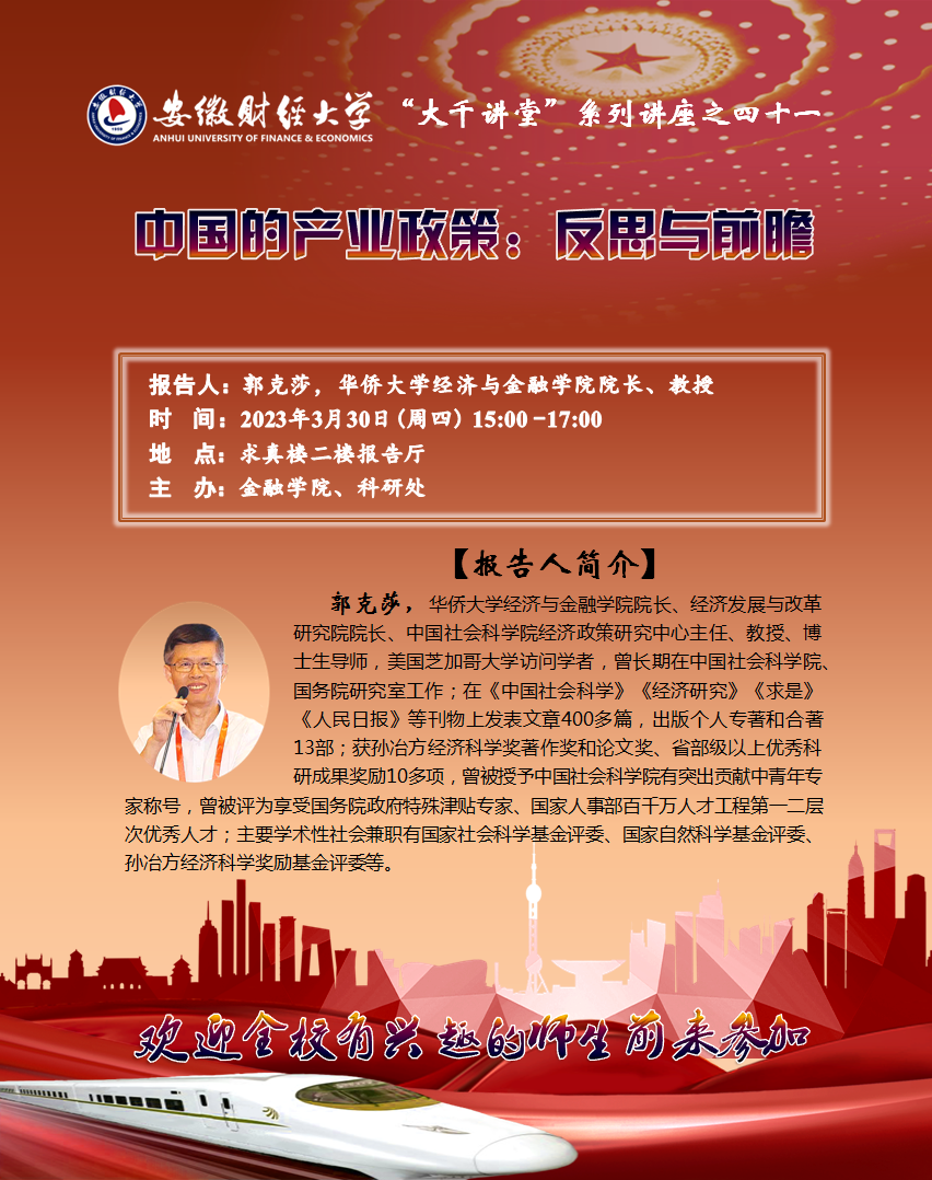 2023年3月30日:【“大千讲堂”系列讲座之四十一】中国的产业政策:反思与前瞻