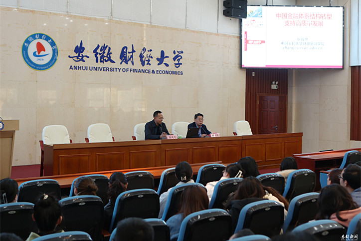 3月25日下午,应金融学院、科研处邀请,中国人民大学财政金融学院副院长、国家级人才特聘教授称号获得者、国家社科基金重大项目首席专家张成思教授在东校一号行政楼一楼报告厅作了题为“中国金融体系结构转型支持高质量发展”的专题报告。金融学院部分师生聆听了报告。报告会由校党委常委、副校长周加来教授主持。