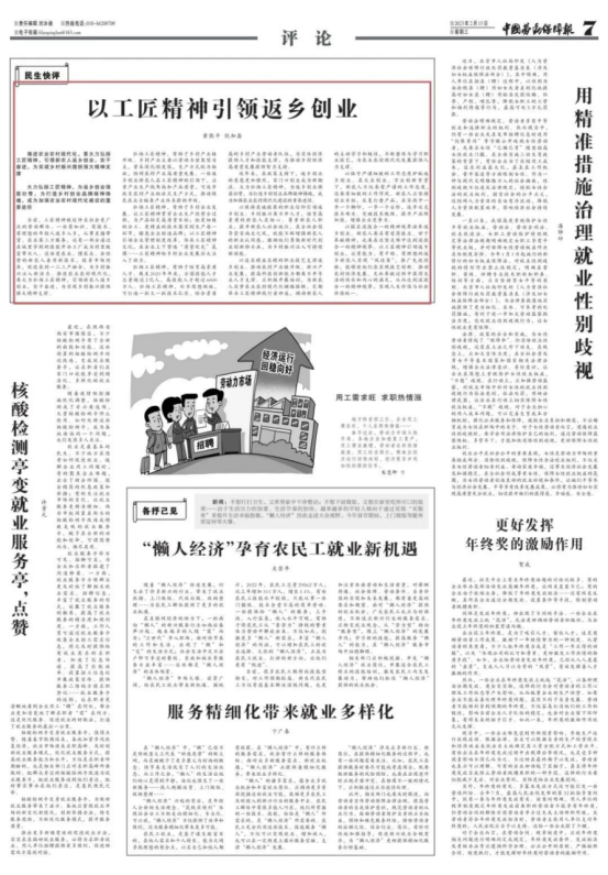 2月15日,《中国劳动保障报》刊发我校黄敦平教授理论文章《以工匠精神引领返乡创业》。