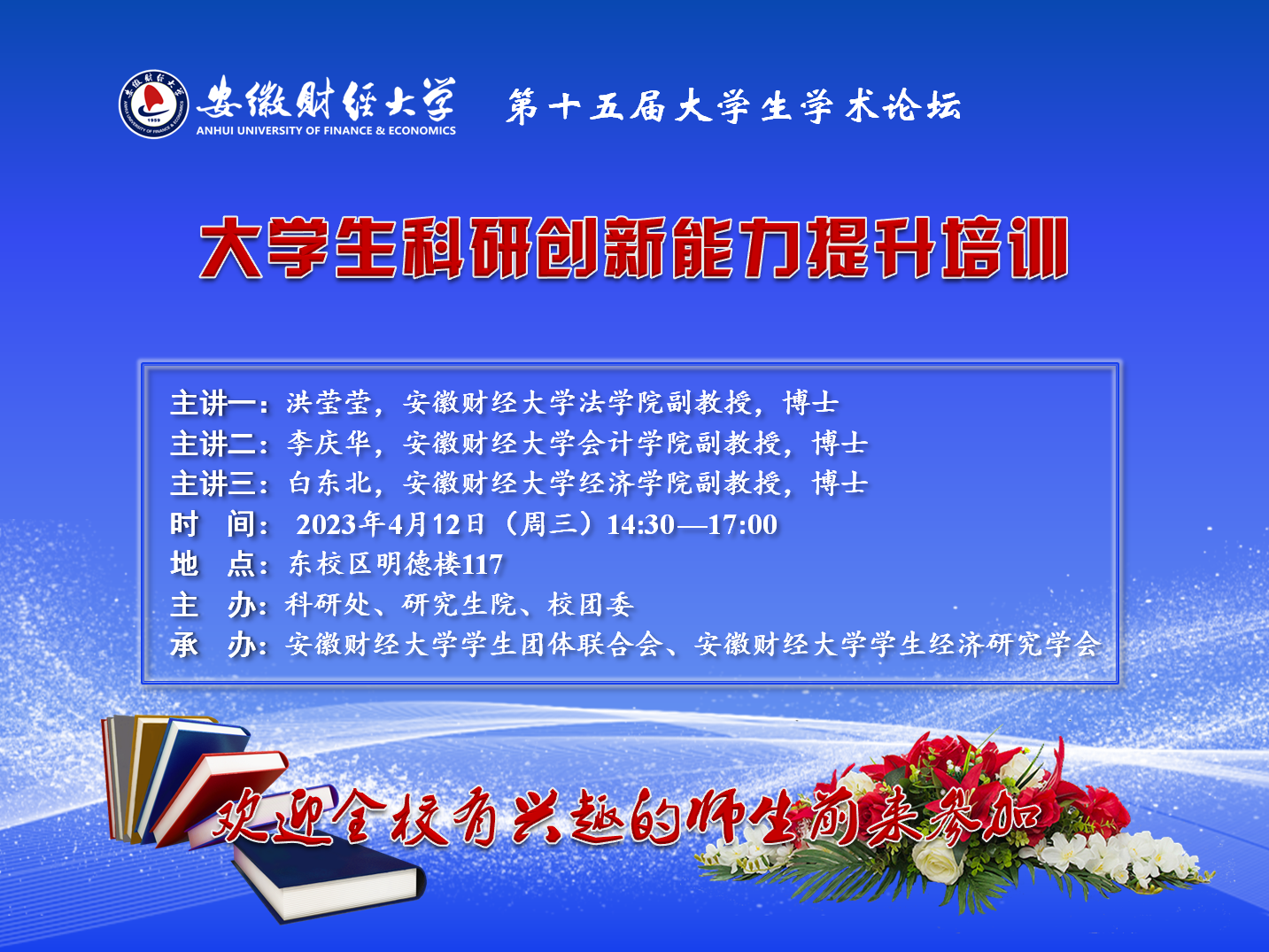 2023年4月12日:【第十五届大学生学术论坛】大学生科研创新能力提升培训