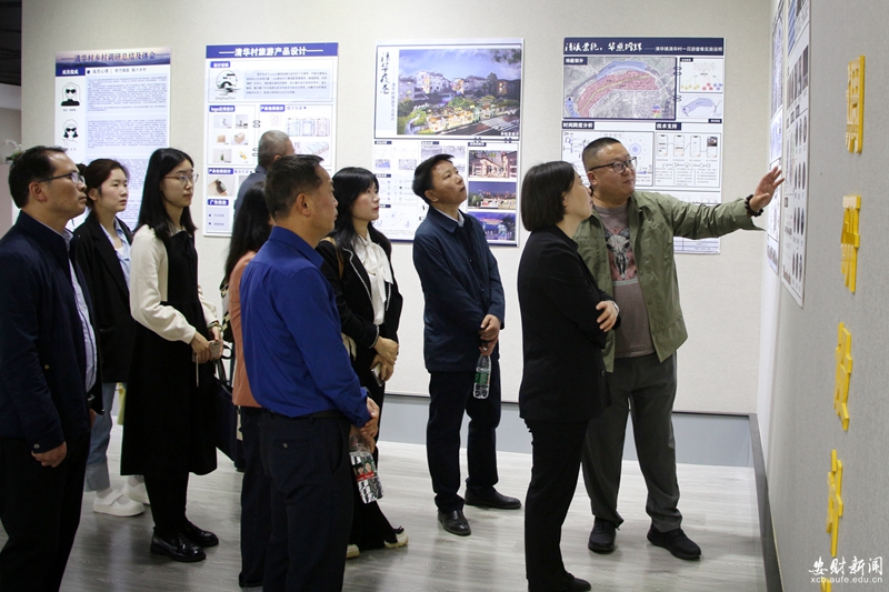 座谈交流前,孙涛、许心宏等陪同张华、陈龙远一行参观了艺术学院环境设计专业婺源县清华镇乡村调研成果展厅。