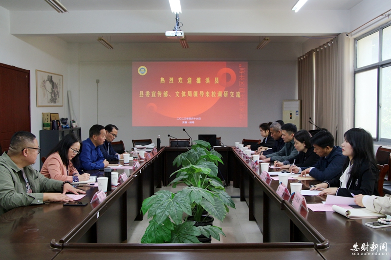 张华、陈龙远分别介绍了濉溪县县情和文旅产业发展现状及存在的问题。濉溪县作为一个拥有1处世界文化遗产、5处国家级文物保护单位的文化旅游资源大县,一直在努力谋求推动县域文旅产业高质量发展。但在实际推进过程中,还面临着缺乏总体规划、人才不足、办法不多、效果不明等困难。张华表示,此次安财之行所看到的环境设计专业学生乡村调研成果,所了解到的学校旅游管理、环境设计等学科专业和人才资源优势,以及安财师生主动作为、热情扎实的工作作风,给调研组一行留下了深刻的印象,相信选择安财作为文旅产业发展合作伙伴会是一个正确的选择。